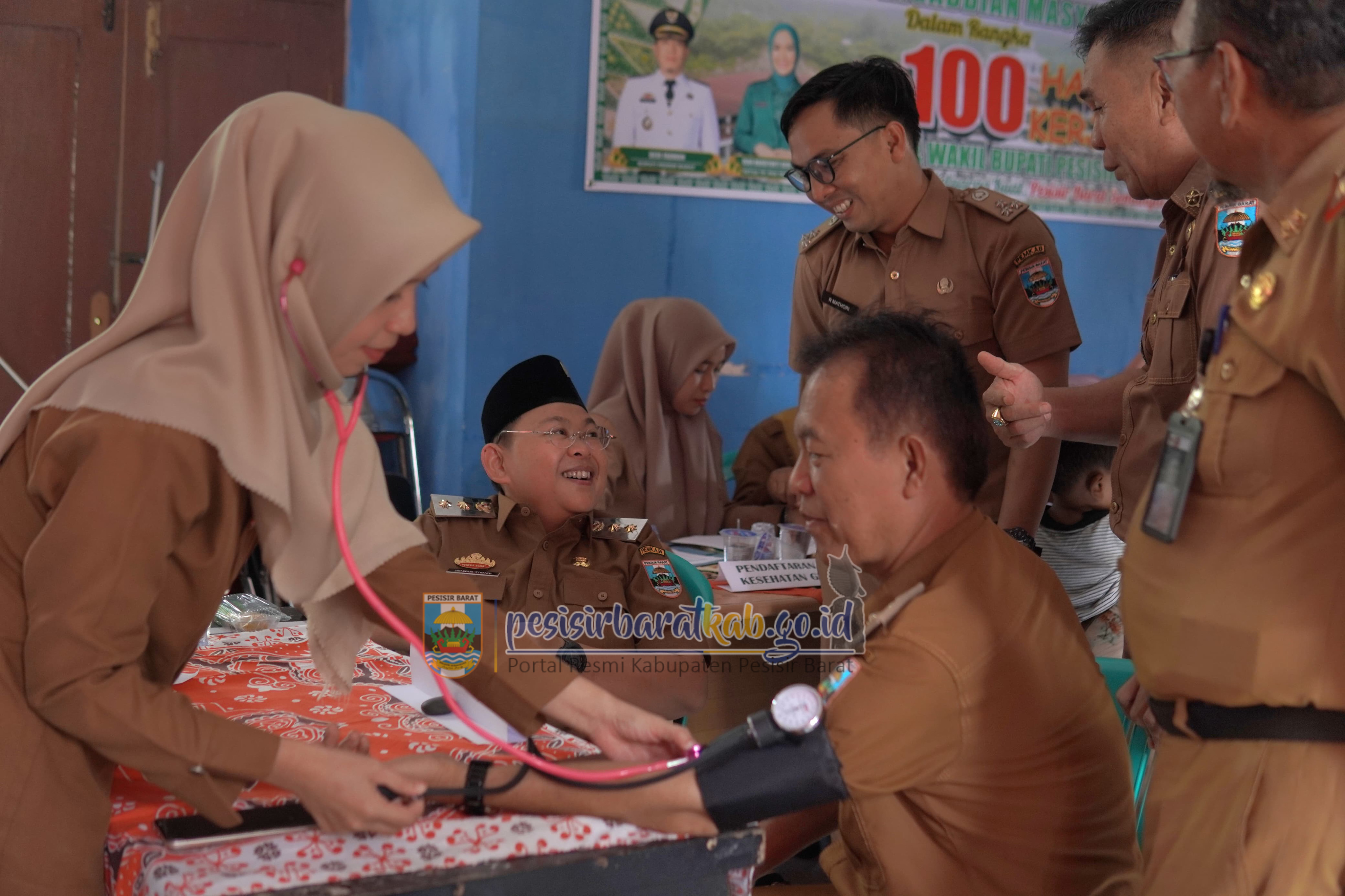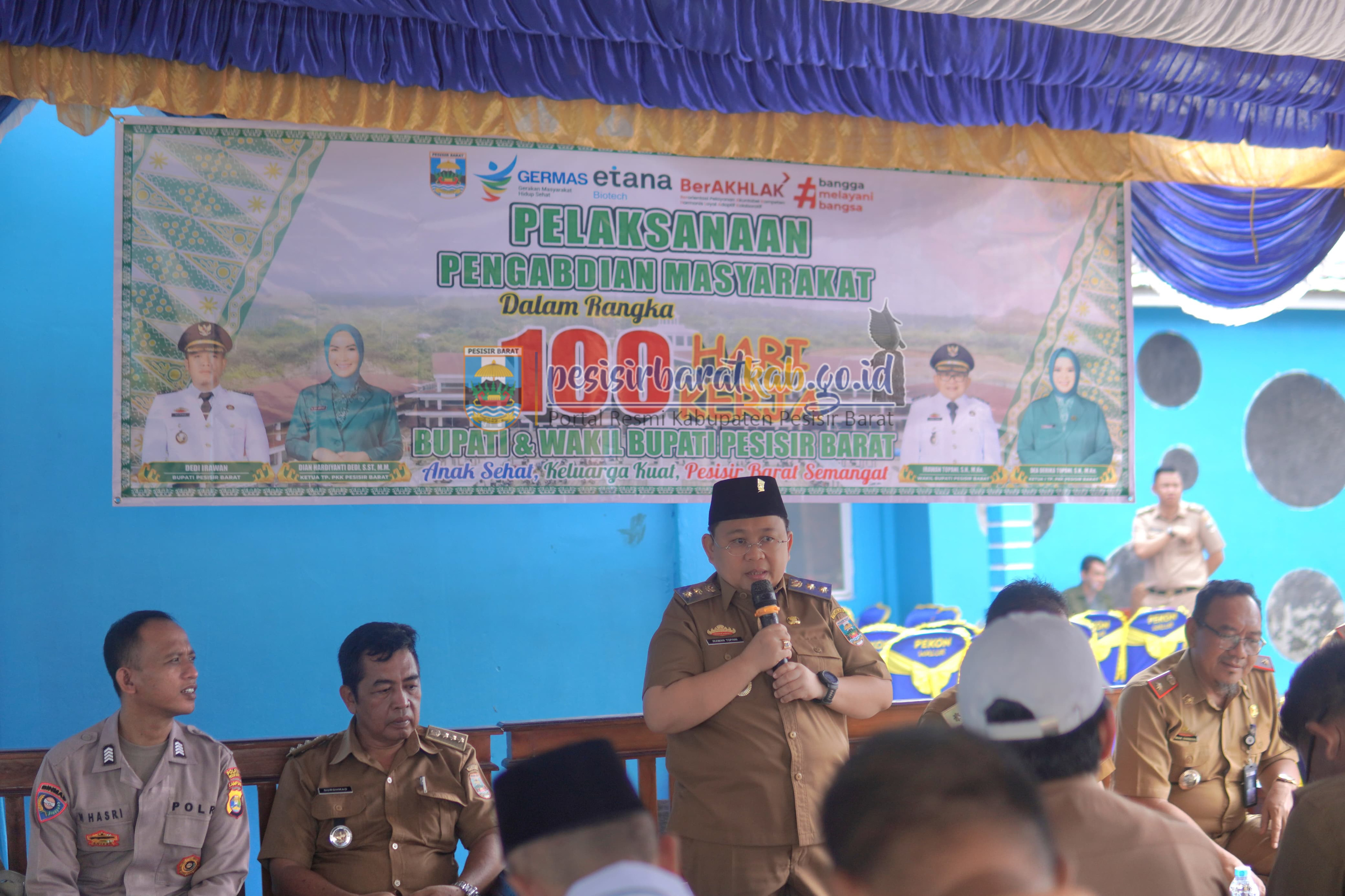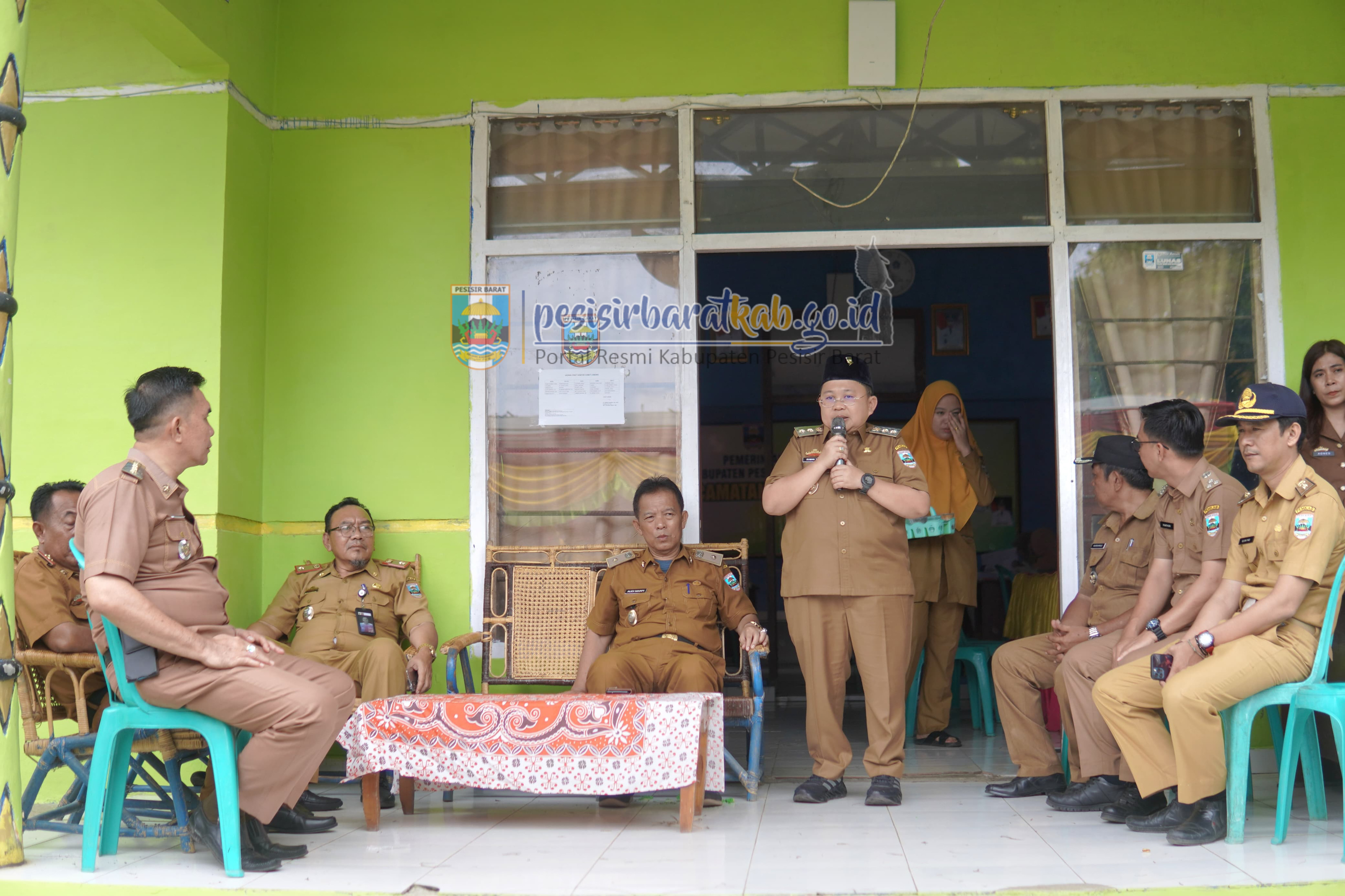 PESISIR BARAT-Wakil Bupati Pesisir Barat (Pesibar), Irawan Topani, S.H., M.Kn., meninjau pelaksanaan Pemberian Vaksinasi dalam rangka pengabdian kepada masyarakat 100 hari kerja Bupati-Wakil Bupati Pesibar, di dua lokasi berbeda yakni Kecamatan Pesisir Utara dan Lemong, Senin (2/6/2025).