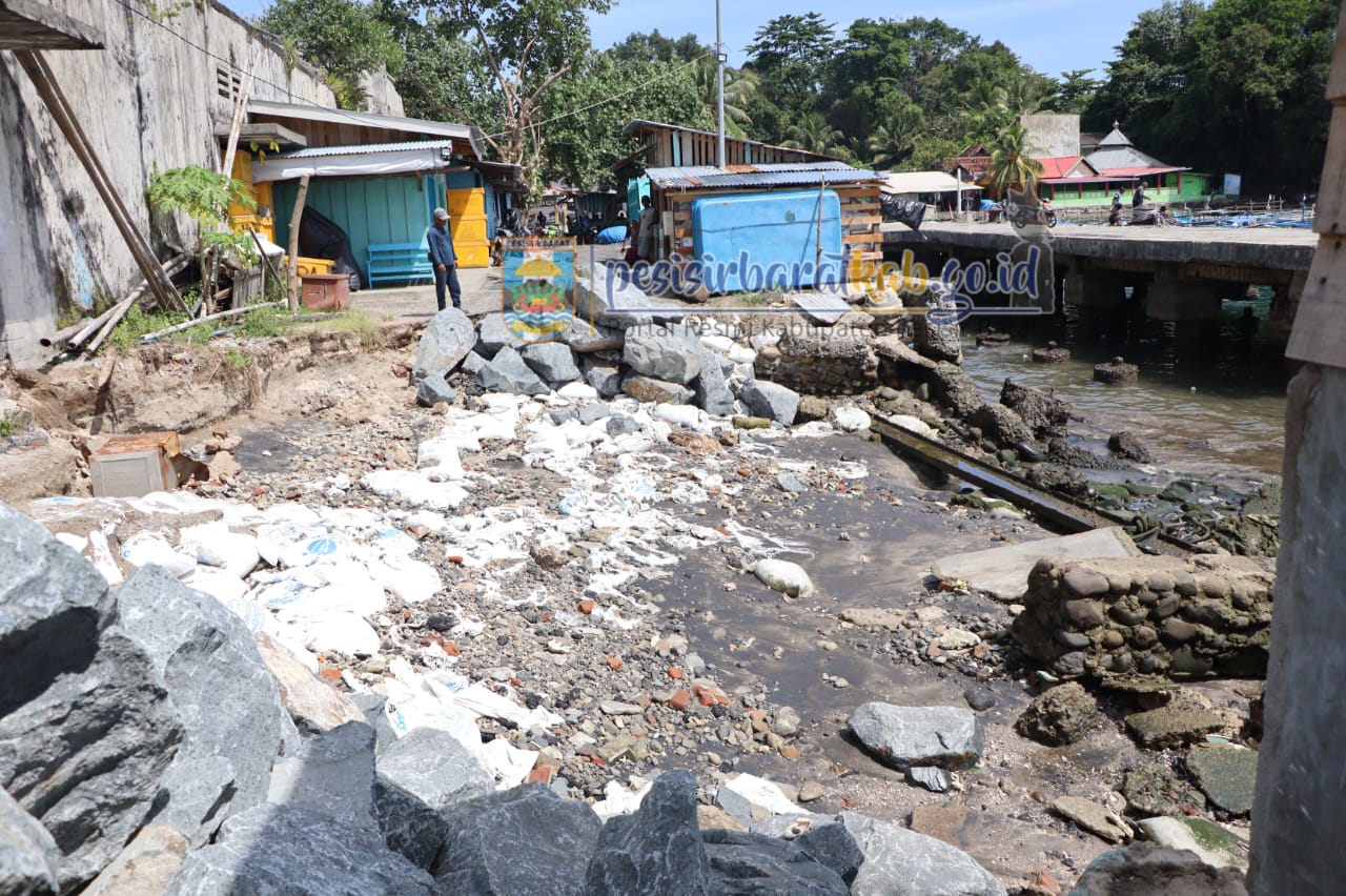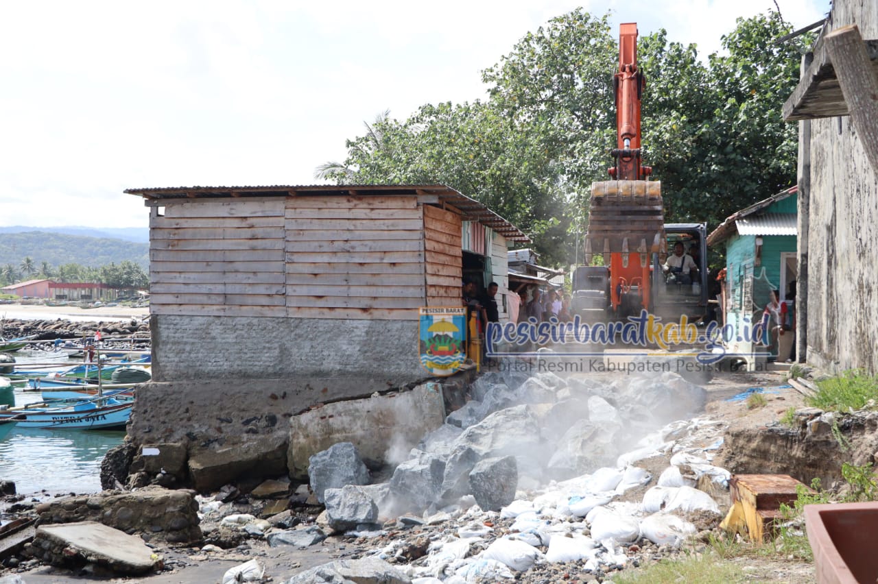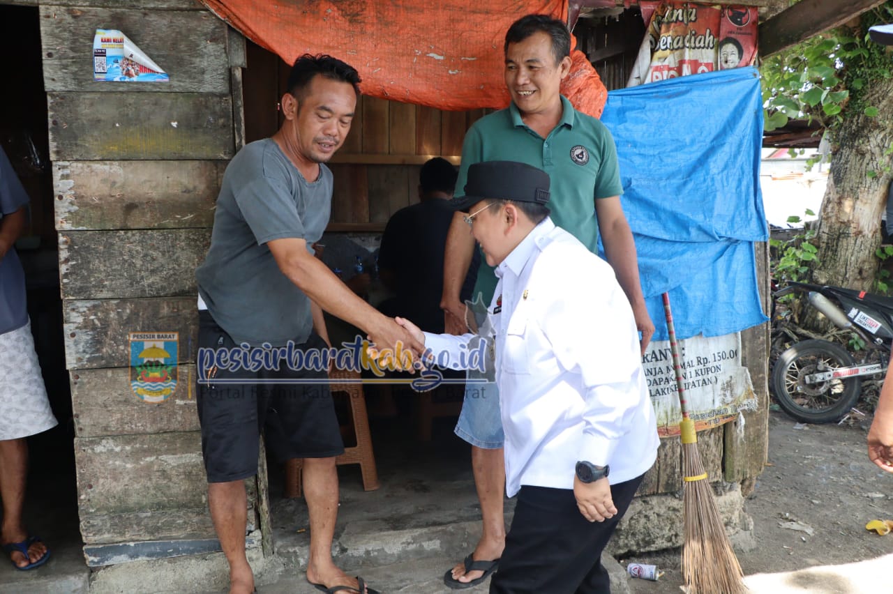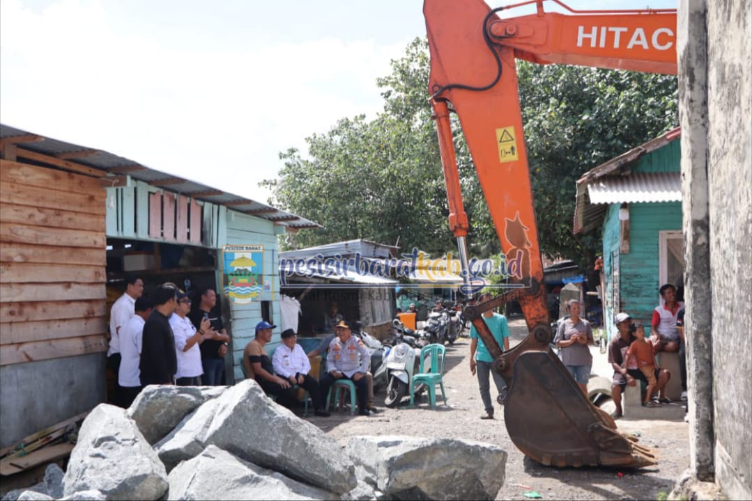 PESISIR BARAT-Wakil Bupati Pesisir Barat (Pesibar), Irawan Topani, S.H., M.Kn., meninjau penanganan abrasi pantai di Pelabuhan Kualas Stabas Kecamatan Pesisir Tengah, Rabu (11/6/2025).