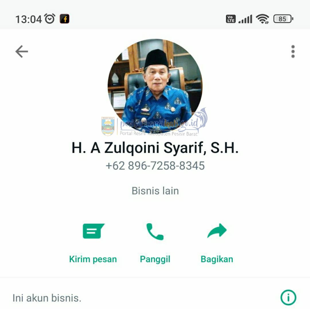 Wakil Bupati Pesisir Barat A.Zulqoini Syarif, S.H., mengimbau kepada seluruh masyarakat, pengurus masjid, ataupun pihak lainnya untuk waspada dan tidak terlalu menanggapi, jika ada yang menghubungi via aplikasi WhatsApp yang mengatasnamakan dirinya untuk memberikan bantuan dana hibah masjid.