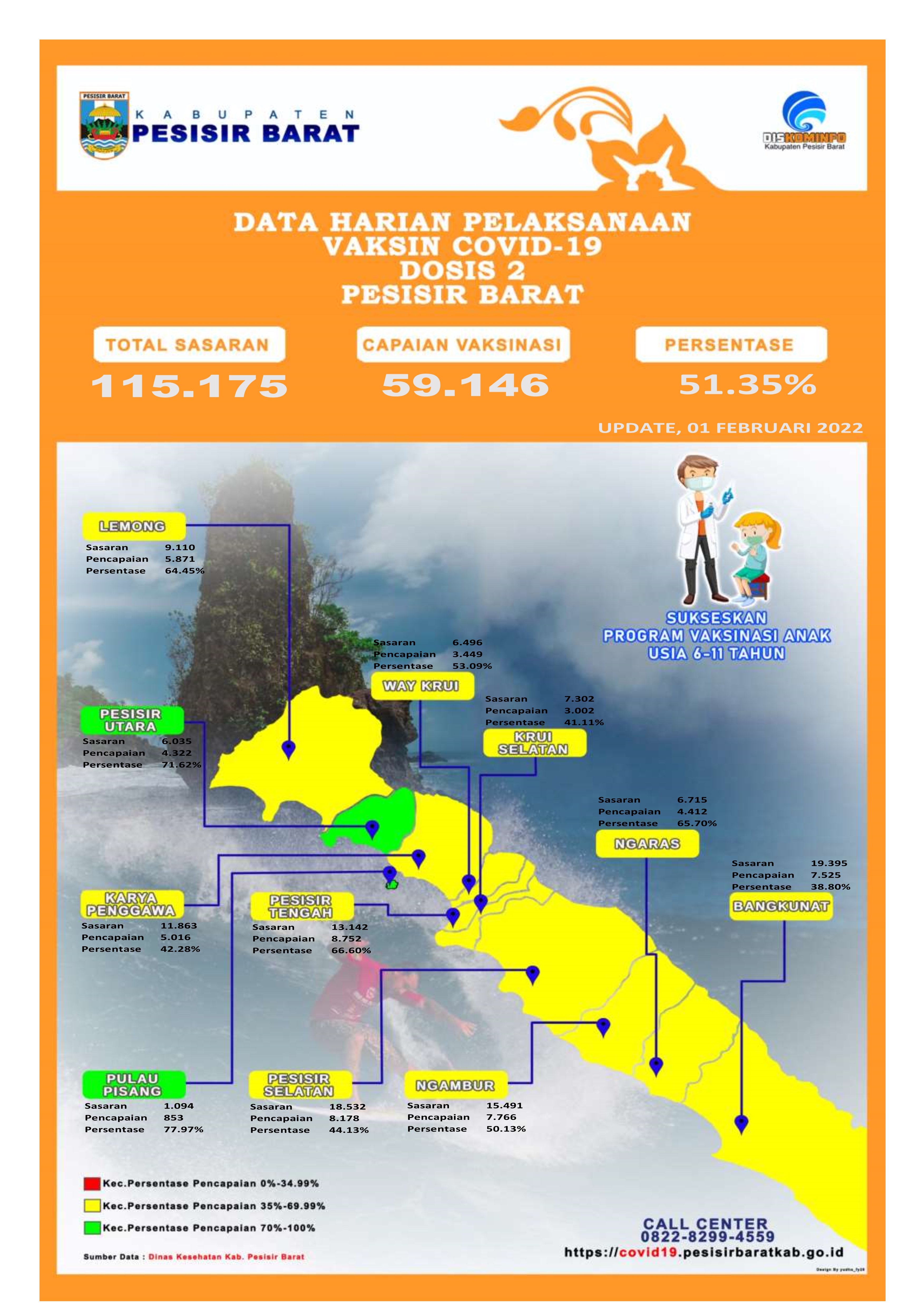 Capaian Vaksinasi Covid-19 per - 01 Februari 2022