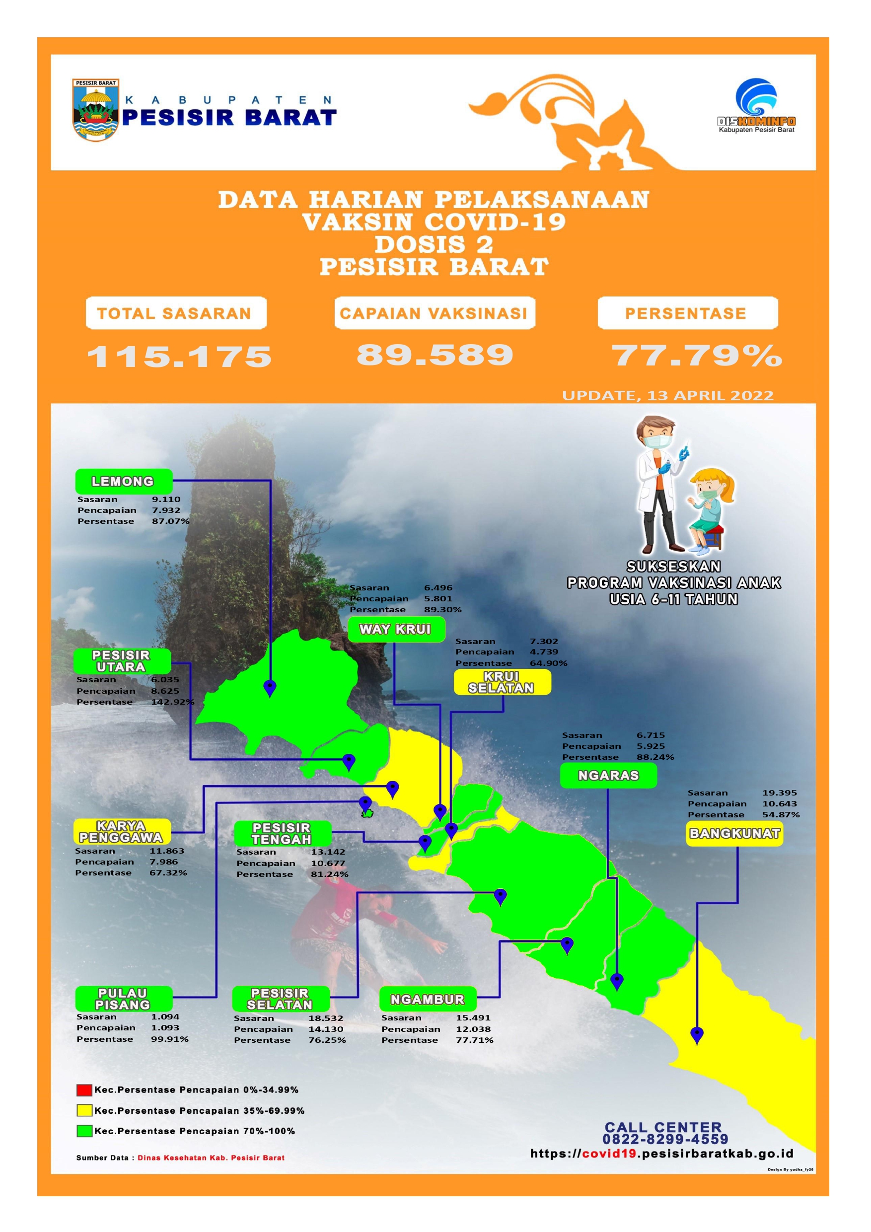 Capaian Vaksinasi Covid-19 per - 13 April 2022