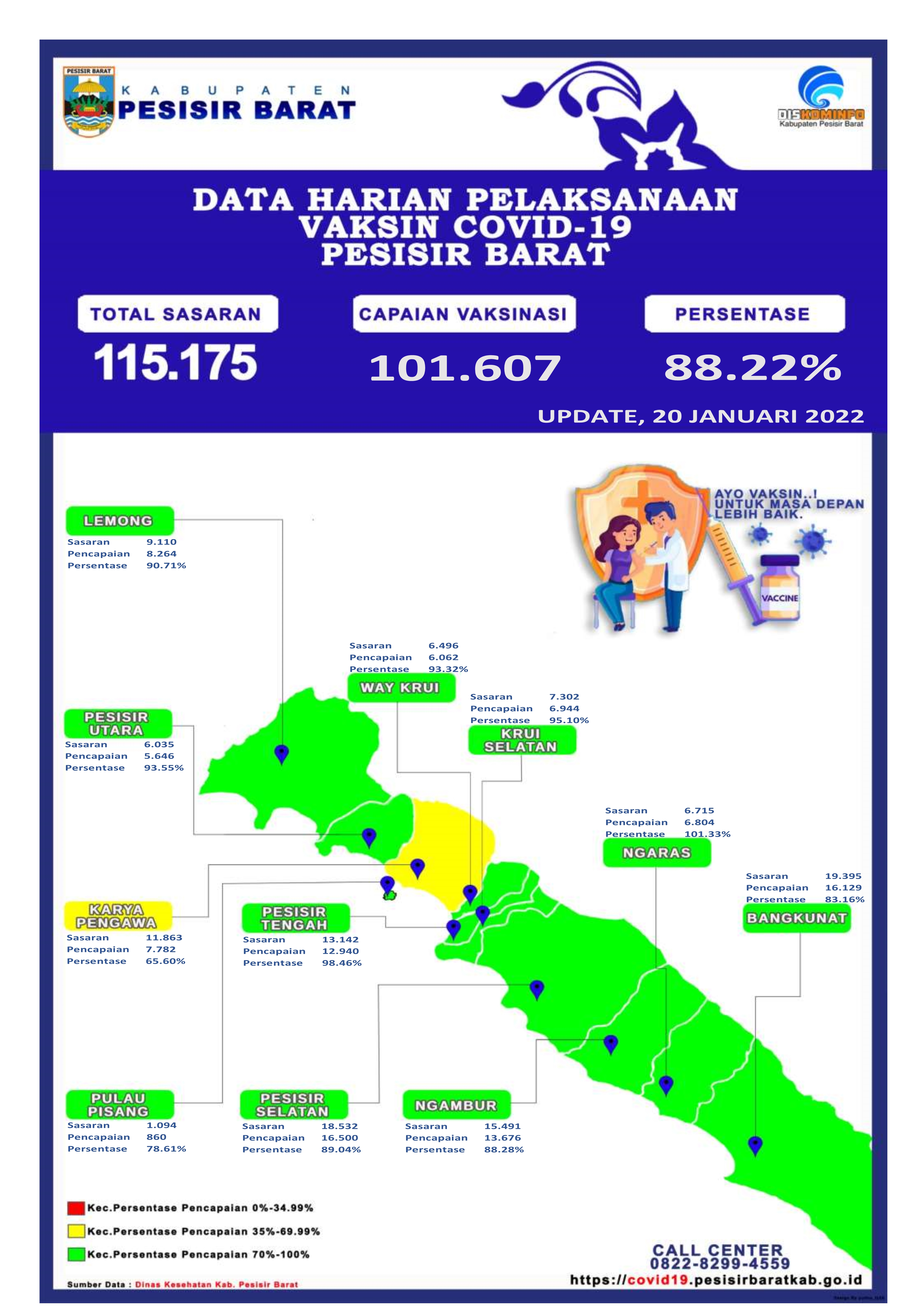 Capaian Vaksinasi Covid-19 per - 20 Januari 2022