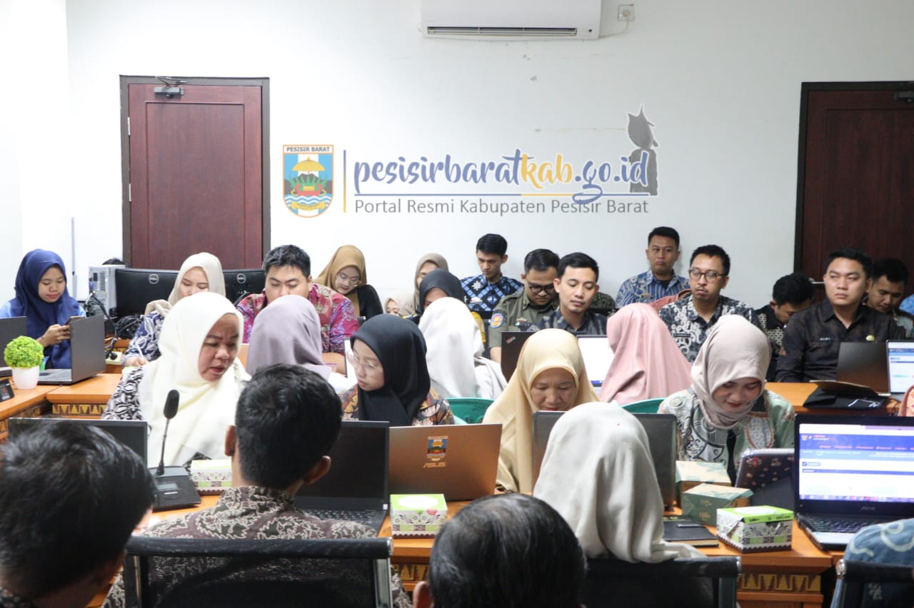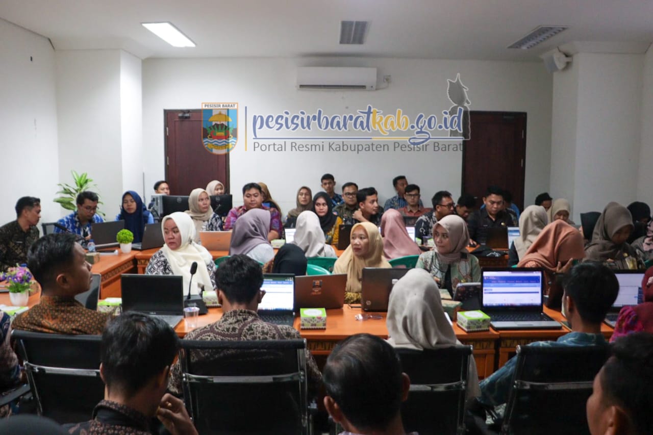 PESISIR BARAT-Dinas Komunikasi Informatika Statistik dan Persandian (Diskominfotiksan) Kabupaten Pesisir Barat (Pesibar) menggelar kegiatan Bimbingan Teknis (Bimtek) Sistem Informasi Pemerintahan Daerah (SIPD) E-Walidata, di ruang Ngejalang Lantai 1 Gedung Marga Sai Batin Komplek Perkantoran Pemkab Pesibar, Kamis (3/7/2025).