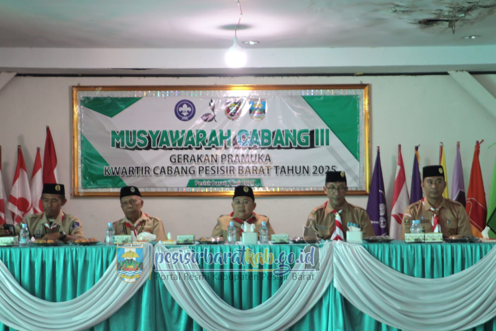 PESISIR BARAT-Wakil Bupati Pesisir Barat (Pesibar), Irawan Topani, S.H., M.Kn., menghadiri kegiatan Musyawarah Cabang (Muscab) ke III Kwartir Cabang (Kwarcab) Gerakan Pramuka Pesibar, di Gedung Pramuka, Rabu (2/7/2025).