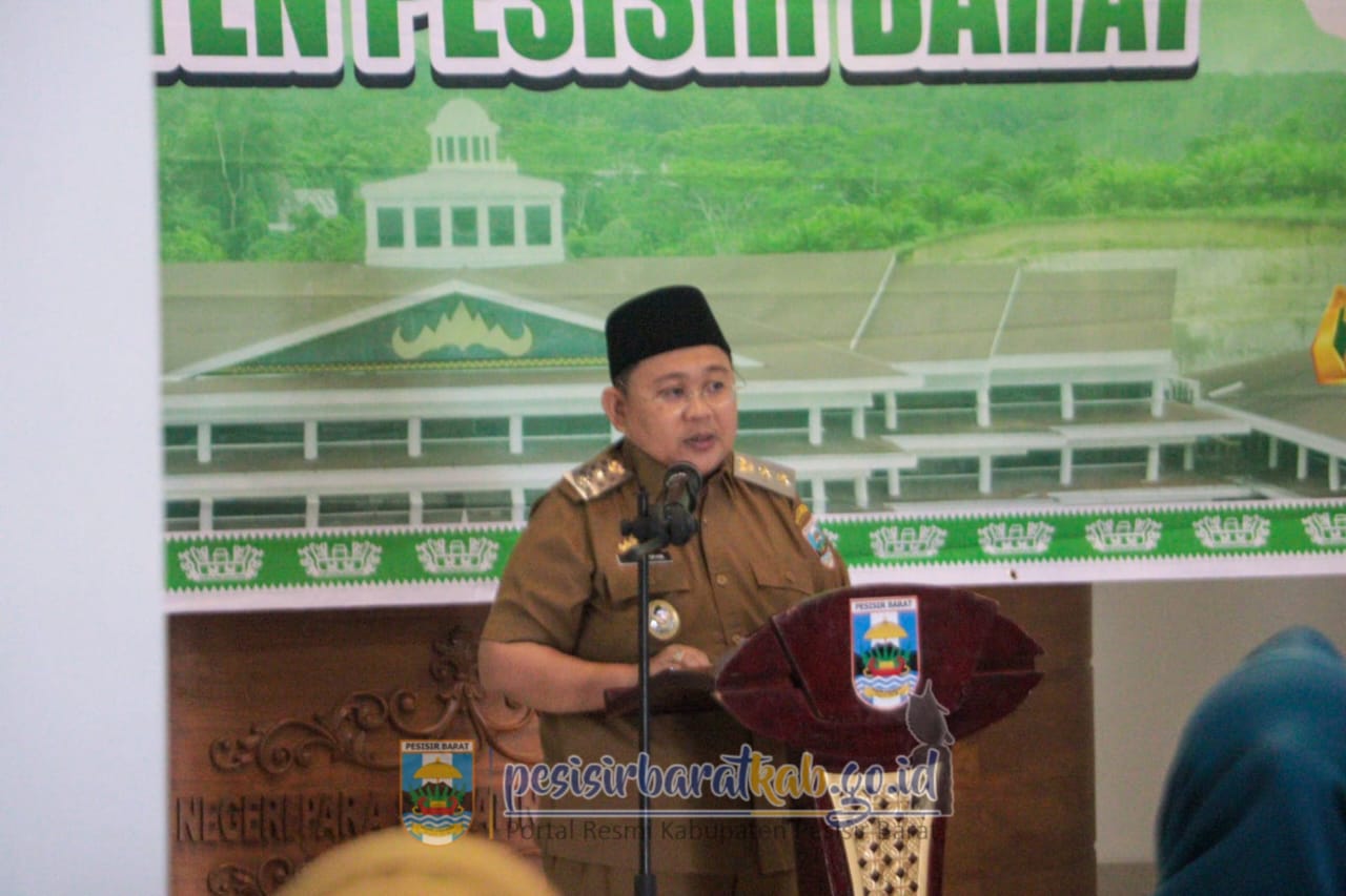 PESISIR BARAT-Wakil Bupati Pesisir Barat (Pesibar), Irawan Topani, S.H., M.Kn., membuka kegiatan Gebyar 1 Muharram 1447 Hijriah Tahun 2025, di Lobi Lantai 1 Gedung Marga Sai Batin Komplek Perkantoran Pemkab Pesibar, Senin (30/5/2025).