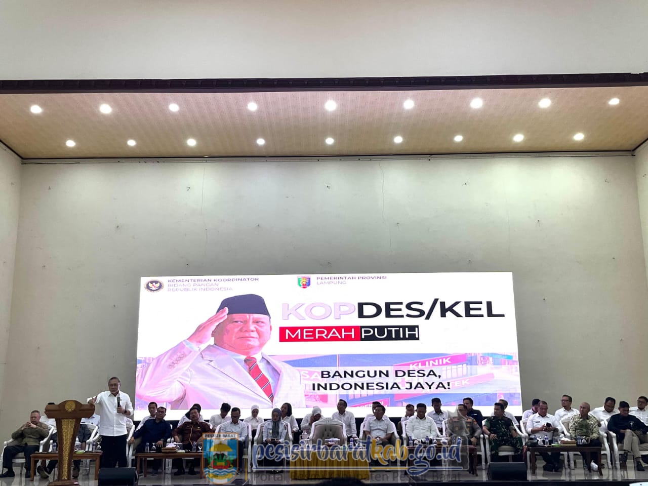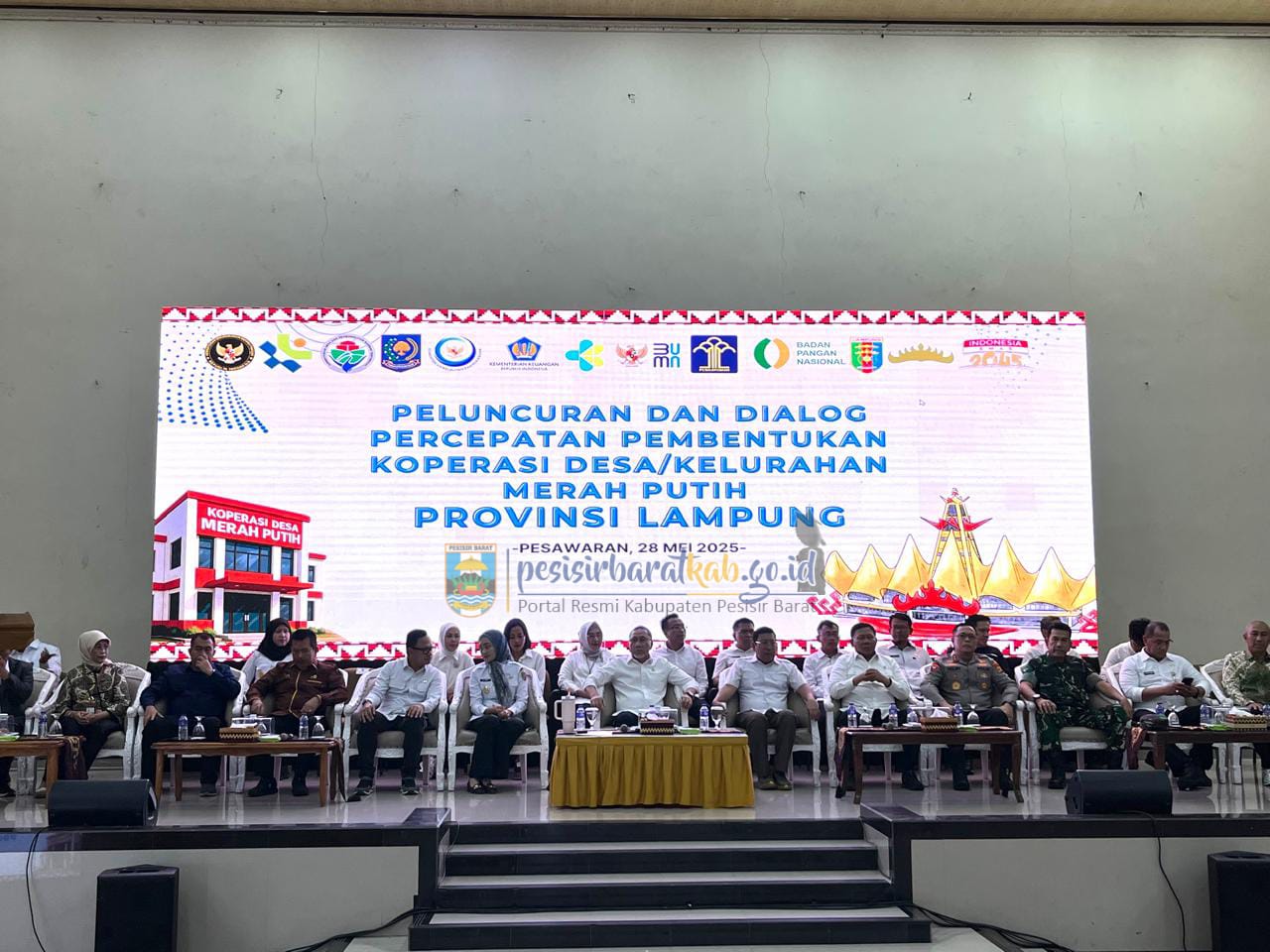 PESISIR BARAT-Wakil Bupati Pesisir Barat (Pesibar), Irawan Topani, S.H., M.Kn., menghadiri kegiatan Peluncuran dan Dialog Percepatan Pembentukan Koperasi Desa/Kelurahan Merah Putih Provinsi Lampung, di Graha Adora, Kabupaten Pesawaran, Rabu (28/5/2025).