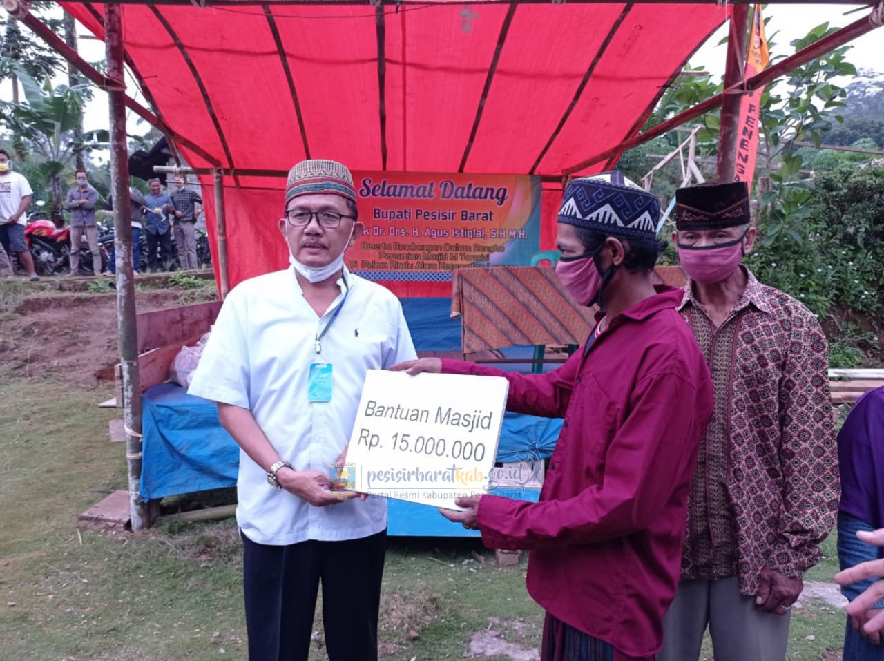 Bupati Pesisir Barat, Dr. Drs. Agus Istiqlal, SH., MH yang didampingi Wakil Bupati Pesisir Barat A. Zulqoini Syarif, S.H melakukan Kunjungan Kerja sekaligus meresmikan Masjid HM. Tarmizi Di Pekon Penengahan Dusun Rindu Alam Kec. Lemong.