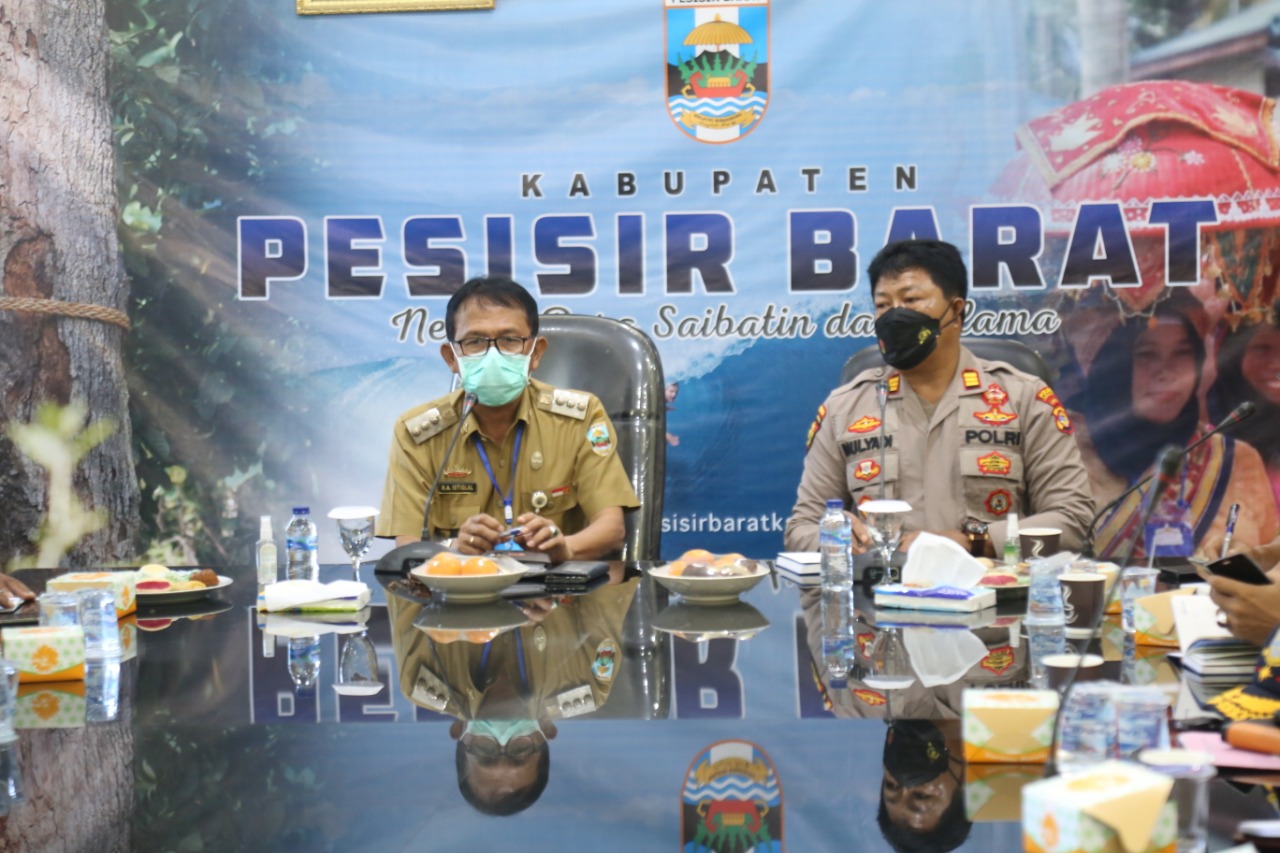 Bupati Pesisir Barat DR. Drs.Agus Istiqlal,SH.,MH Mempimpin Langsung Rapat Koordinasi Satgas Pencegahan Covid-19.