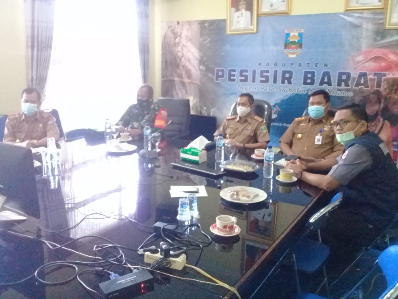 Bupati Pesisir Barat, DR. Drs. Agus Istiqlal, SH.,MH yang diwakili Sekda Kabupaten Pesisir Barat Ir. N. Lingga Kusuma, MP., mengikuti Vicon Tatap muka Menko Polhukam dengan Pemerintah Daerah dan Penyelenggara Pilkada dengan Tema
