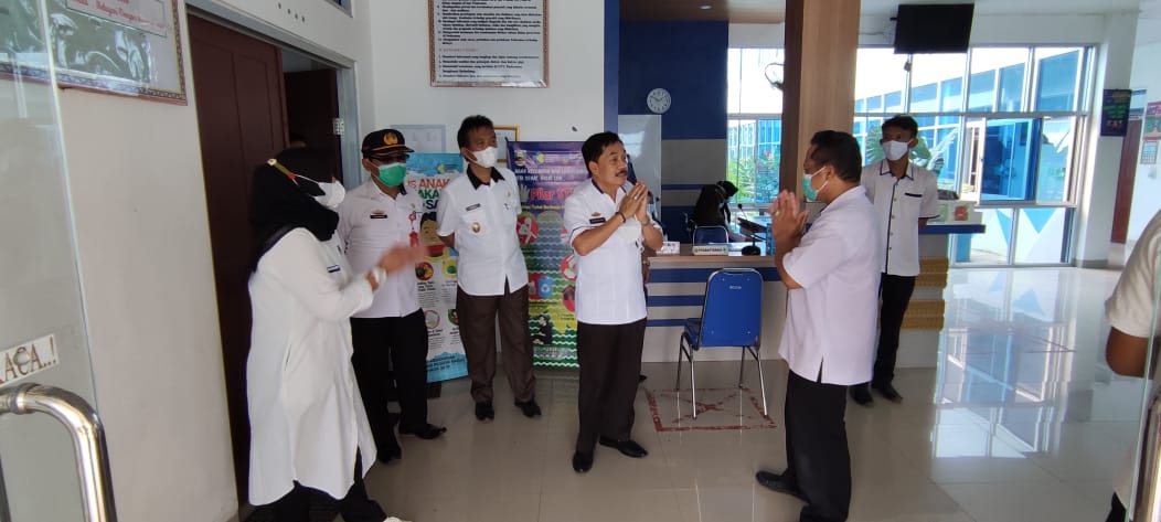 Pjs. Bupati Pesisir Barat Achmad Crisna Putra didampingi Inspektur Kabupaten Pesisir Barat dan Asissten Bidang Pemerintahan dan Kesejahteraan Rakyat Audi Marpi melakukan Monitoring ke Puskesmas dan Kantor Kecamatan Bangkunat