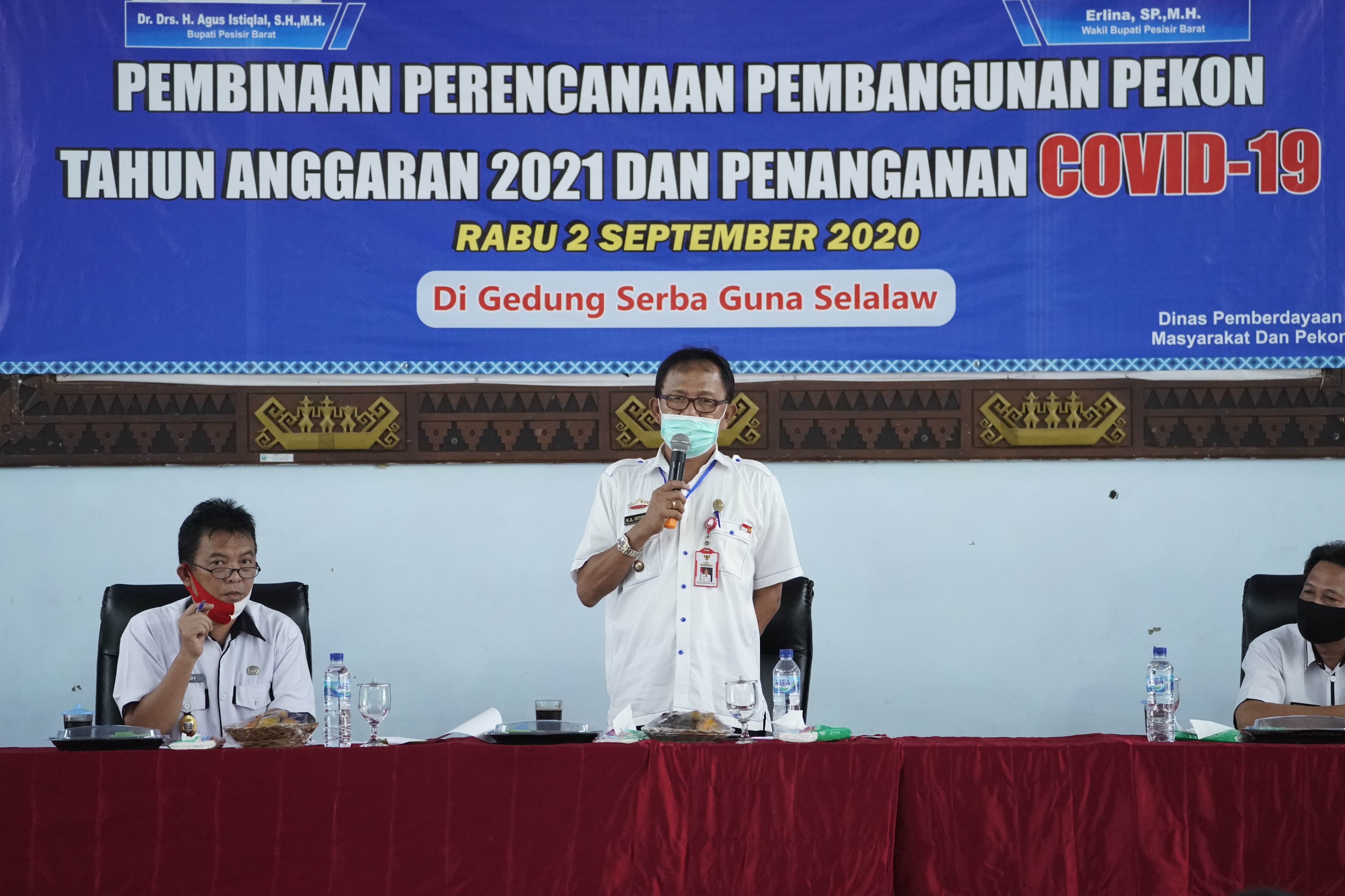 Bupati Pesisir Barat Dr. Drs. Agus Istiqlal S.H.,MH. Menghadiri Acara Pembinaan Perencanaan Pembangunan Pekon Tahun Anggaran 2021 dan Penanganan Covid-19.