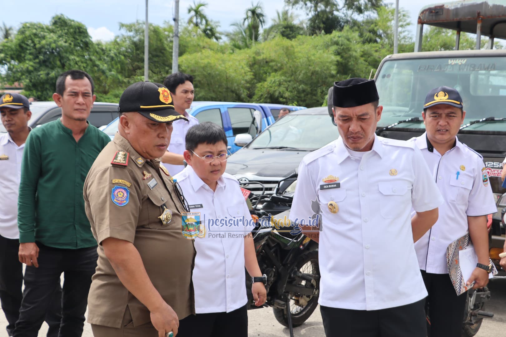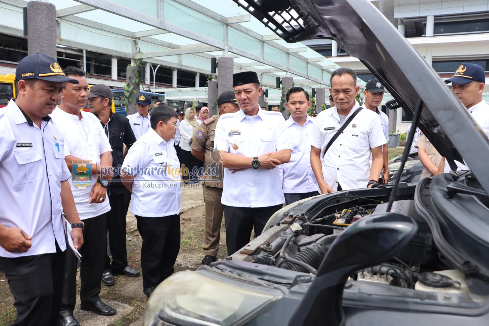 PESISIR BARAT-Kepala Dinas Komunikasi, Informatika, Statistik, dan Persandian (Diskominfotiksan) Suryadi, S.IP., M.M., menginformasikan bahwa, Bupati Pesisir Barat (Pesibar), Dedi Irawan, didampingi Wakil Bupati, Irawan Topani, S.H., M.Kn., memeriksa seluruh Kendaraan Dinas (Randis) yang ada di Organisasi Perangkat Daerah (OPD), Unit Pelaksana Teknis Dinas (UPTD) Puskesmas, dan Kecamatan, di Halaman Kompleks Perkantoran Pemkab Pesibar, Rabu (5/3/2025).