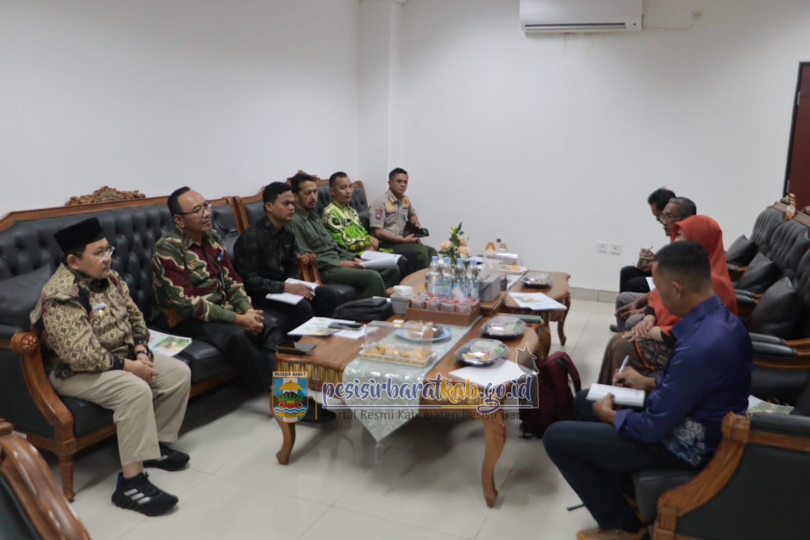 PESISIR BARAT-Wakil Bupati Pesisir Barat (Pesibar), Irawan Topani, SH., M.Kn., menyambut kunjungan dua organisasi non-pemerintah, yakni Repong Indonesia dan Wildlife Conservation Society (WCS), di ruang kerja Wakil Bupati, Lantai 3 Gedung Marga Sai Batin Komplek Perkantora Pemkab Pesibar, Kamis (31/7/2025).