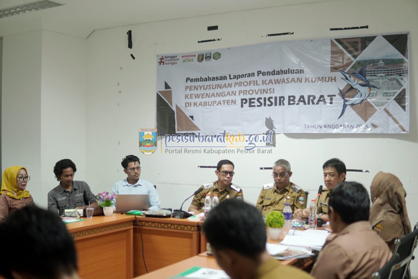 PESISIR BARAT-Asisten III Bidang Administrasi Umum Sekretariat Pemerintah Kabupaten (Pemkab) Pesisir Barat (Pesibar), Drs. Gunawan, M.Si., membuka kegiatan rapat pembahasan laporan pendahuluan penyusunan profil kawasan kumuh kewenangan Provinsi di Pesibar, di ruang Ngejalang Lantai 1 Gedung Marga Sai Batin Komplek Perkantoran Pemkab Pesibar, Selasa (22/7/2025).