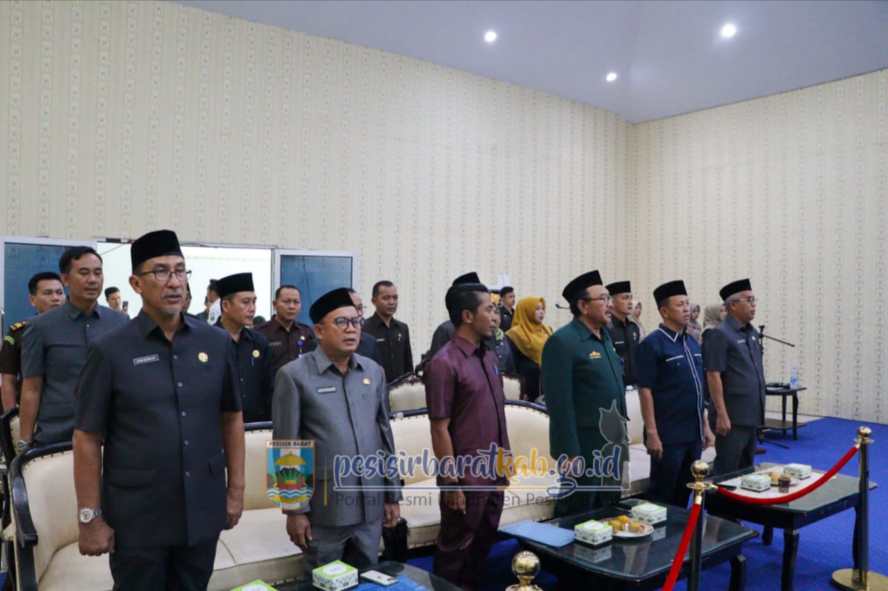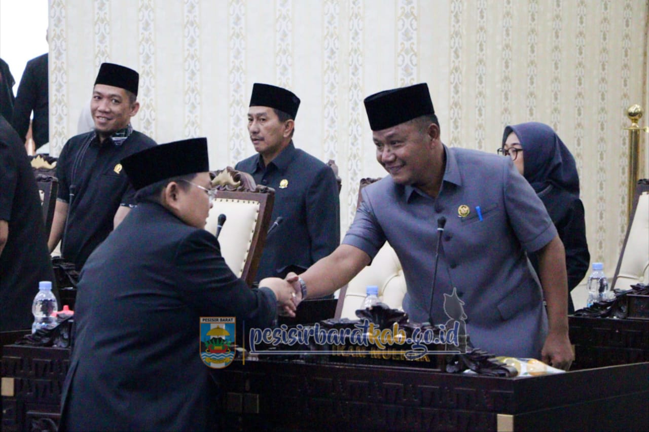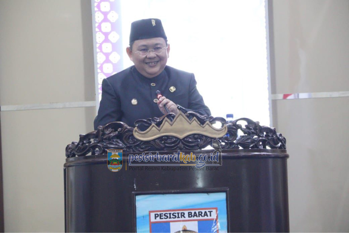PESISIR BARAT-Bupati Pesisir Barat (Pesibar), Dedi Irawan, menghadiri rapat paripurna Dewan Perwakilan Rakyat Daerah (DPRD) dengan agenda Penyampaian Rancangan Peraturan Daerah (Ranperda) Pesibar tentang Rencana Pembangunan Jangka Menengah Daerah (RPJMD) Tahun 2025-2029, di ruang rapat paripurna DPRD Pesibar, Selasa (8/7/2025).