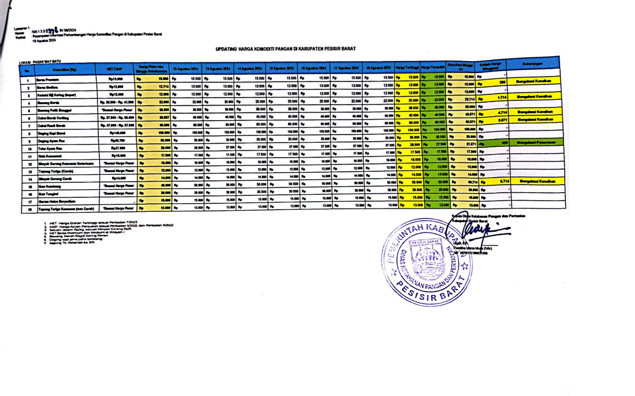 Updating Harga Komoditi Pangan Di Kab.Pesisir Barat, Per 30/09/2024